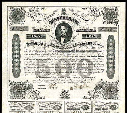 Columbia, South Carolina, Mar 2, 1863, $500, B-191, Type 133, (Cr.124A), #639, Issued bond, 7 Coupons attached, Memminger portrait in middle, Rose signature, VF condition, Evans & Cogswell.