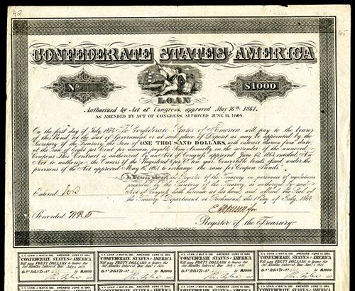 Confederate Bond, Act of June 13, 1864, $1000, B-384, Type 192, Unlisted With Apperson Signature.