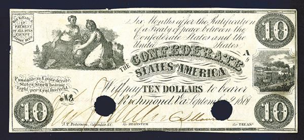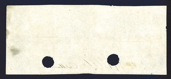 T-28. Ceres and Commerce at top left. Extremely Fine, poc's thru signatures, old stain at right end.