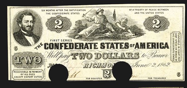 T-42. J. Benjamin at top left. About Uncirculated, poc's at signatures.