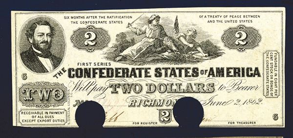 T-42. J. Benjamin at top left. About Uncirculated, poc's at signatures.