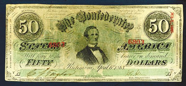 CSA. Jefferson Davis portrait at center. Fr. CS-57. Fine. A bit of paper tone.