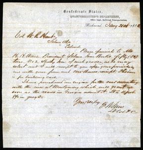 Confederate States, Quartermaster's Department, Office Supt. Railroad Transportation, Correspondence