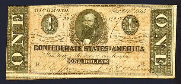 Richmond, VA. Feb. 17th, 1864, $1, T-71, Issued, blank back, VF-XF condition with toning, pp B, cut into left border and top left corner.
