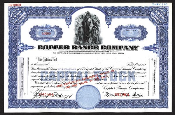 Michigan. <100 Shares, Specimen, Black with blue border, Michigan mining related company.