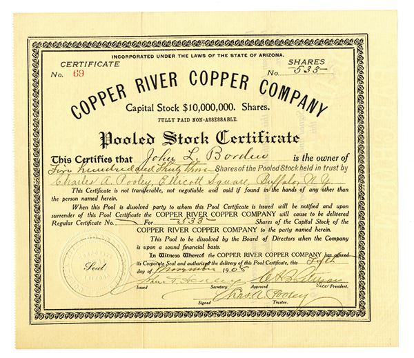 Alaska, (Inc. in Arizona). 1908. 533 Shares. Issued and uncancelled stock. Black border. No vignette. XF condition. Rare Alaska Mining company.