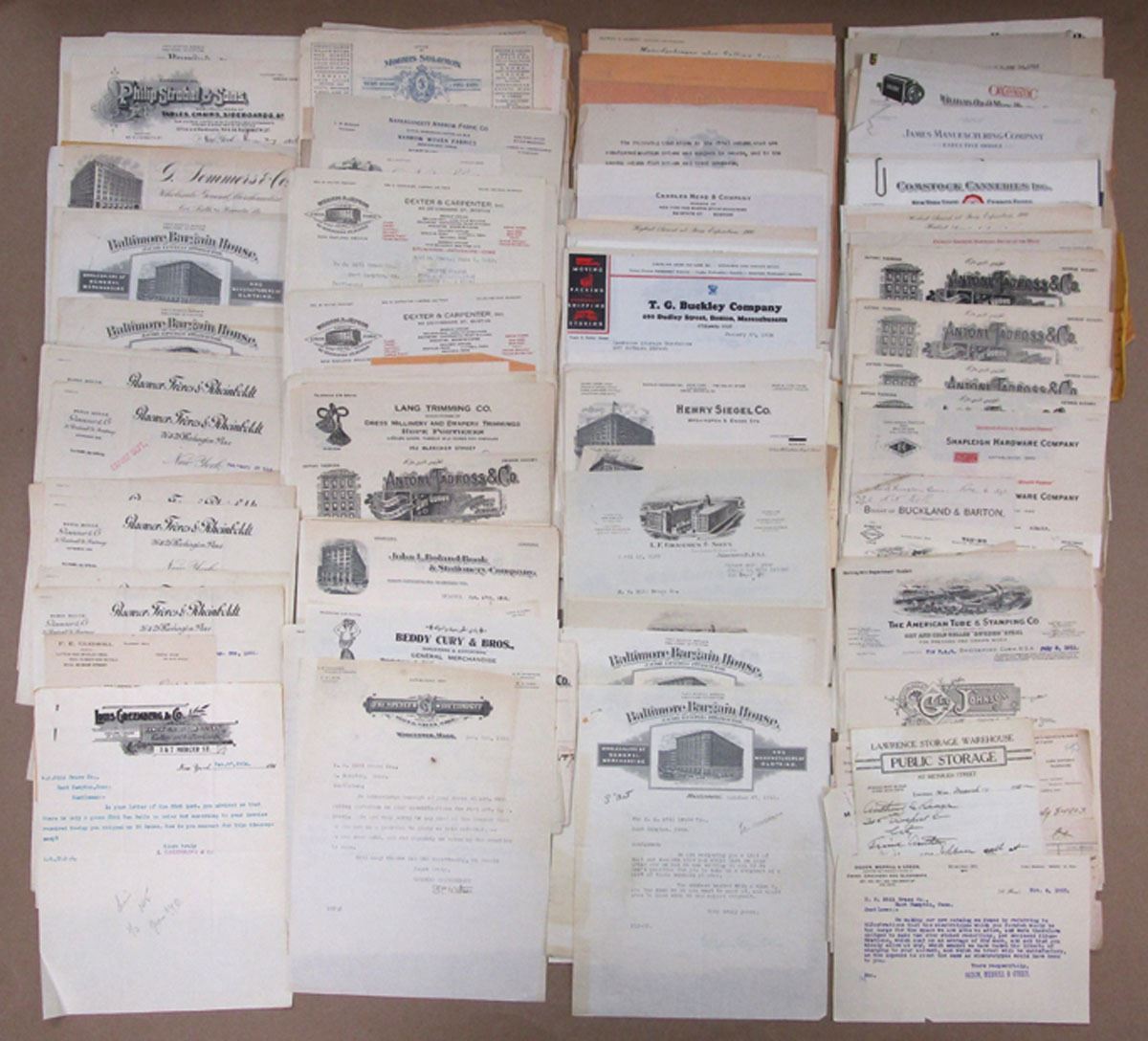 Lot of 150+ pieces of correspondence with purchasers, customers, suppliers, creditors and more. Letters are printed on company letterhead. Fine to XF condition. Sold "AS IS."