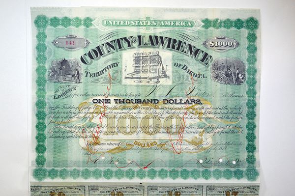 ND. $1000. Mining reduction machine at top center. Bold green underprint. Issued to H. D. Winters. Ink cancelled, 10 coupons. VG-Fine.