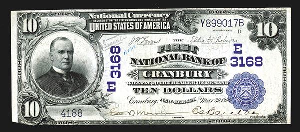 With the exception of some minor grafitti and an errant scissors, this Wholly original Middlesex,NJ Banknote boasts embossed lettering and seals and penned signatures from the President and Cashier of the bank. Less than 10 LG size notes in Census.