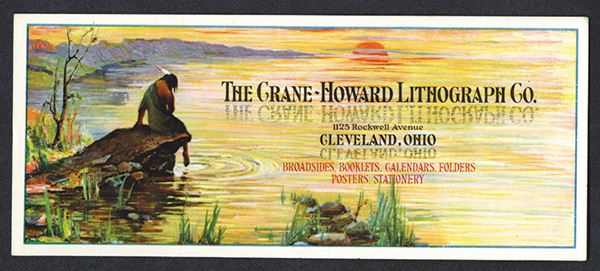 OH. Crane-Howard Lithograph Co. Cleveland, Ohio. Advertising blotter featuring Indian seated pond side at sunset. Nice.