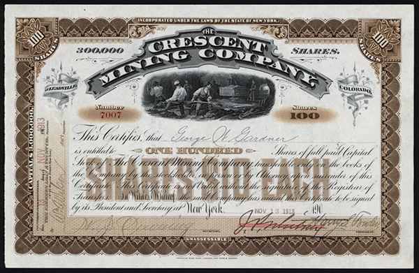 Colorado, 1913, 100 Shs., Miners, Brown, ABNC, XF.