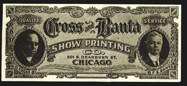 Chicago, Illinois. Advertising Note. Cross & Banta Show Printing Co. Dearborn St. Chicago. Advertising Facsimile note. Overprinted on back for the Iowa Bankers Association Meeting in Des Moines, June 1921. Fine-Very Fine.
