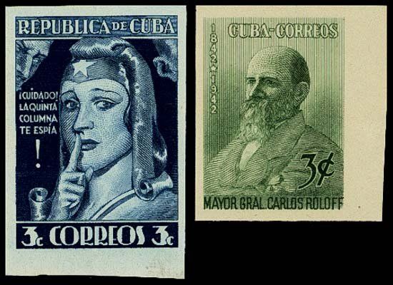 10 different stamps. 1 Centavo, Scott #375 TC in brown on white paper; 3 Centavos, Scott # 376 in brown on white paper; Scott # 376 in blue on white paper; Scott # 376 in brown on light brown very thin card. (issued stamp printed in red); 13 Centavos, Scott #379 TC in brown on white paper; #379 TC in green on white paper; #379 TC in brown on light brown thin card (issued stamp printed in dull rose violet); 10 Centavos, Scott # 390 TC in blue (issued color was in dark violet); 3 Centavos, Scott # 392 TC in light green (issued color was in violet); 1 Centavos, Scott # 394 TC in green on light brown thin card (issued color was in yellow green). AU to Choice uncirculated. No gum as issued. Rare trial color stamps. SBNC.
