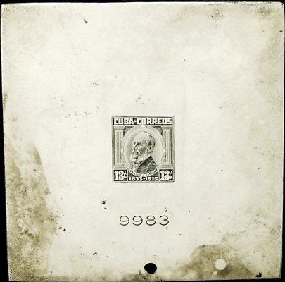 1954. Scott #520. 13 Centavos. Printing plate. 88x90x6mm steel die, full design of stamp, die "9983", cross-hatching on back. XF condition. Unique in archive.