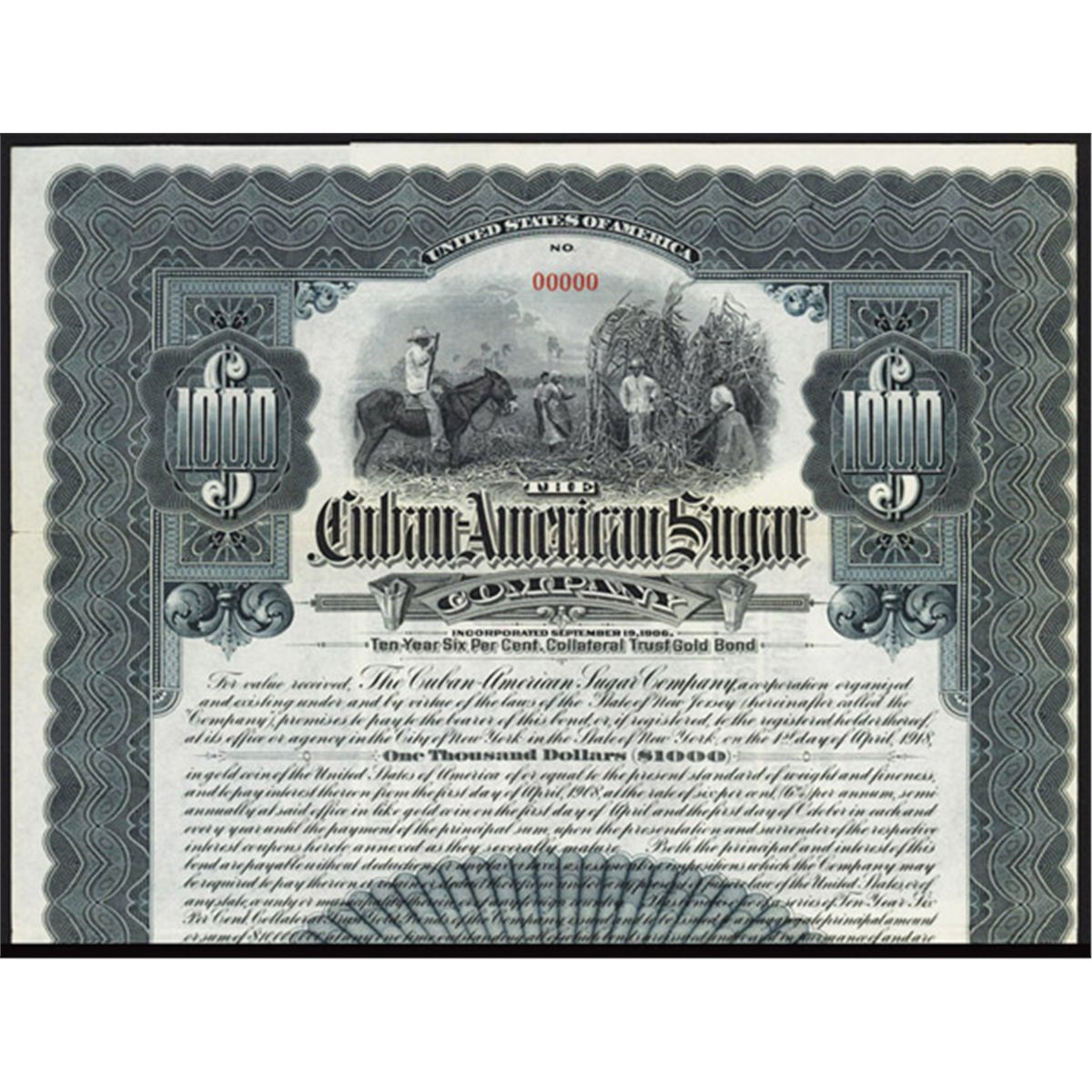 New Jersey, 1908, $1000, Specimen bond, Harvesting sugar cane, Green, ABNC, POC's, XF.