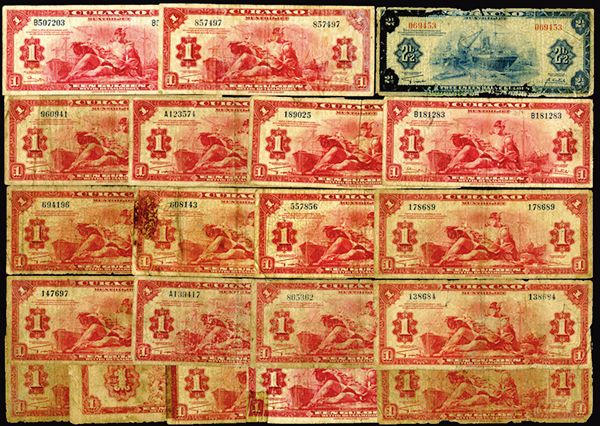 Curacao. 1 Gulden (19) and 2-1/2 Gulden. Group of 20 Notes . Pick #35 (19); 36. Generally Fair to Good one or two perhaps better.