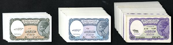Currency Notes, 1961-1999, Group of 145 Notes Egypt, group of 5 Piastre notes, printed for the United Arab Republic (P-180) and Arab Republic of Egypt (P-182, 185, 188). 11 signature varieties included. Mostly UNC, but some circulated.