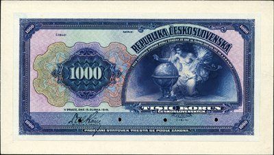 1919. P-13 Unlisted; No series. 1000 Korum Extremely attractive front proof from this scarce issue. Printed on india on large card. Punch cancelled. No series. No back proof included. Unlisted as proof in Pick. ABNC.