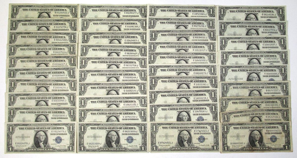 Washington D.C., Series 1935 H. $1, P-416WMh (73) Fr#1618, Issued Banknote Collection, Black printing with George Washington at center and blue seal at right, Back is green with Great Seal flanking One at center with 'In God We Trust' at center, Notes range from Fine to XF condition. (73). Sold "AS IS" no returns accepted.
