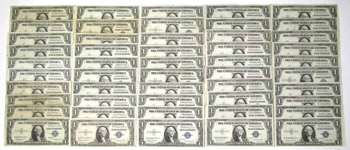 Washington D.C., Series 1935 H. $1, P-416WMh (92) Fr#1618, Issued Banknote Collection, Black printing with George Washington at center and blue seal at right, Back is green with Great Seal flanking One at center with 'In God We Trust' at center, Notes range from Fine to XF condition. (92). Sold "AS IS" no returns accepted.
