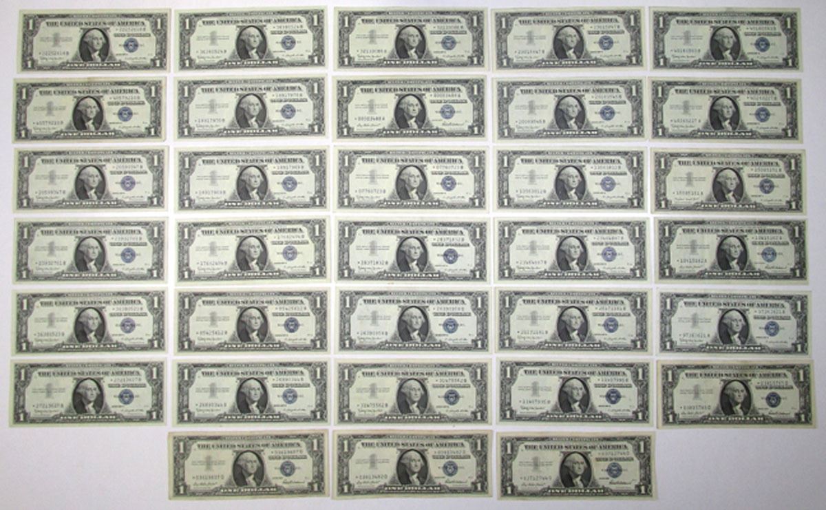 Washington D.C., 1957. Lot of 33 Replacement Notes, Includes: $1 Series 1957, P-419 (6) Fr.# 1619, Priest | Anderson Signatures; $1 Series 1957A, P-419a Fr.# 1620, Smith | Dillon Signatures; $1 Series 1957B, P-419b (26) Fr.# 1621, Granahan | Dillon Signatures. Notes range from Fine to Choice VF or better condition. (33). Sold "AS IS" no returns accepted.