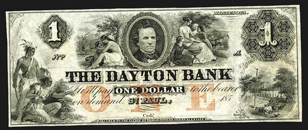 MN. Native Indians at left end, Steam train at right. Females around center portrait at top center. Unissued remainder. DW&Co. Uncirculated.