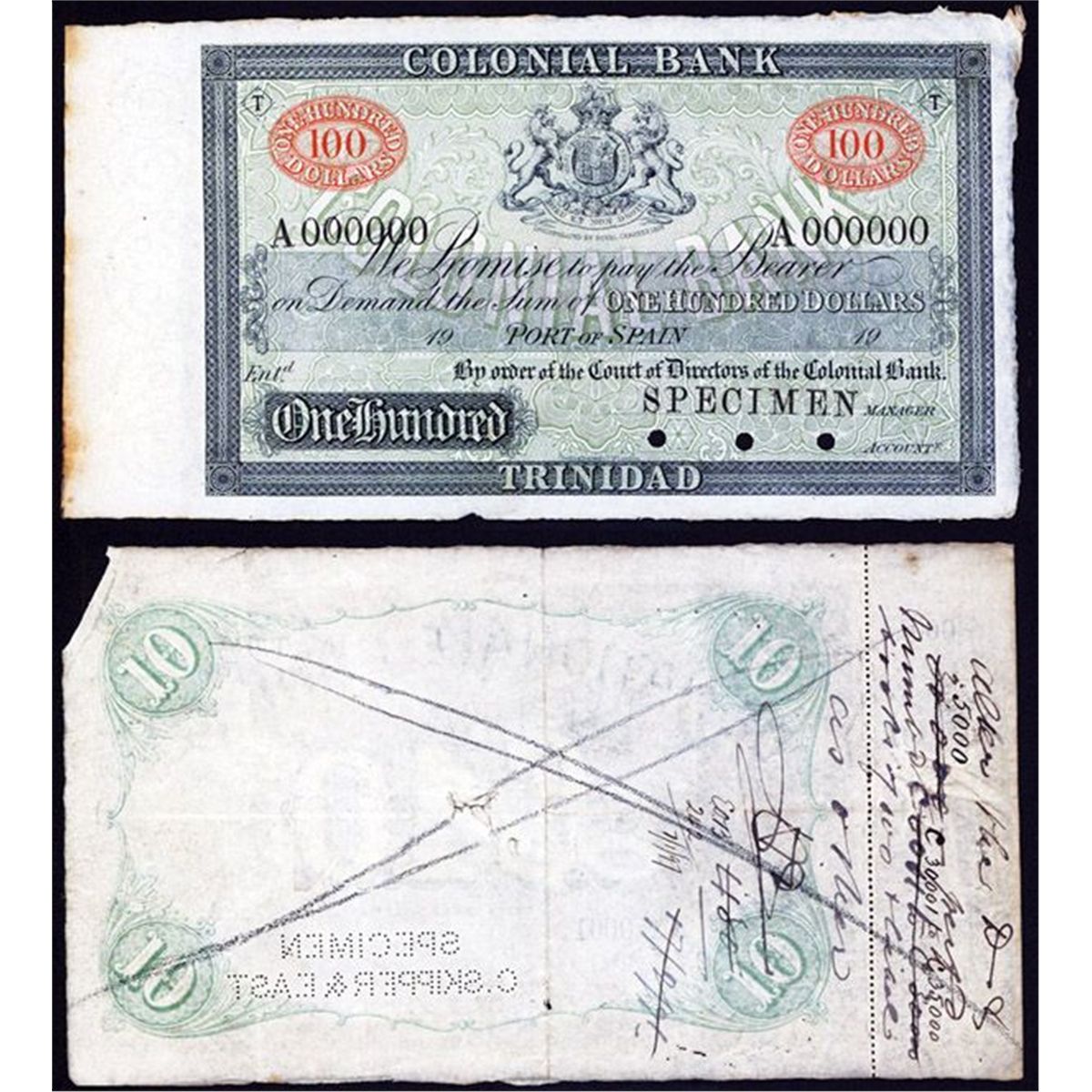 South Africa, 1892, £10, P-50s, Specimen, De Nationale Bank de Zuid-Afrikaansche Republiek, Kruger portrait, S/N C-0001, with counterfoil, unissued, perforated “Specimen, C. Skipper & East”. This note was used by the printer as a master working note; an inscription on the back of the counterfoil states “Alter the ?? 30,000 perf. Number. C001 to C30000 Books of 100 & label as other” plus signature and later inscriptions for a new order from 30001 to 35000 etc. A unique and important item. CS&E
