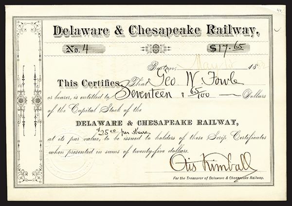 Maryland, 1882, $17.65, I/C, S/N 4, XF, black form with ornate letters, no vignette.