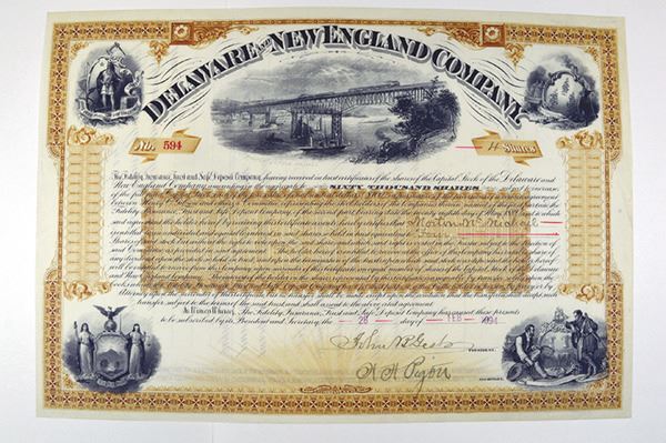 NY. 4 Shrs Stock Certificate. Issued. Uncancelled. Great vignette of the Poughkeepsie Bridge over the Hudson (the bridge is now a walkway and state park). ABNC.