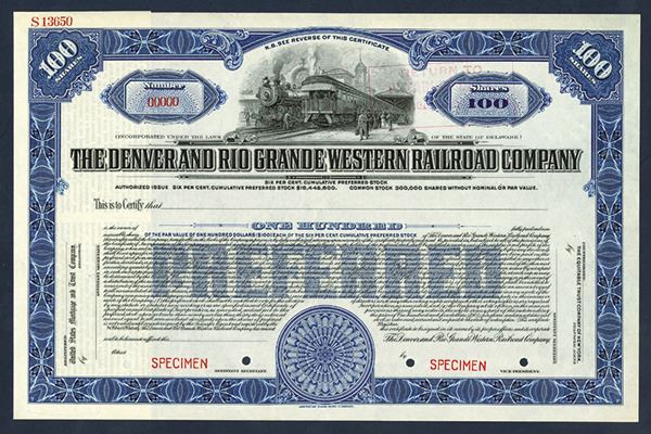 Colorado, 1924, 100 shs., Specimen stk., Blue border with railway station vignette, POC's, XF, ABNC.