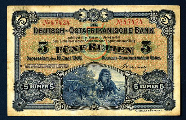 German East Africa, 5 Rupien, 1905, P-1, G&D, very scarce and striking VF.