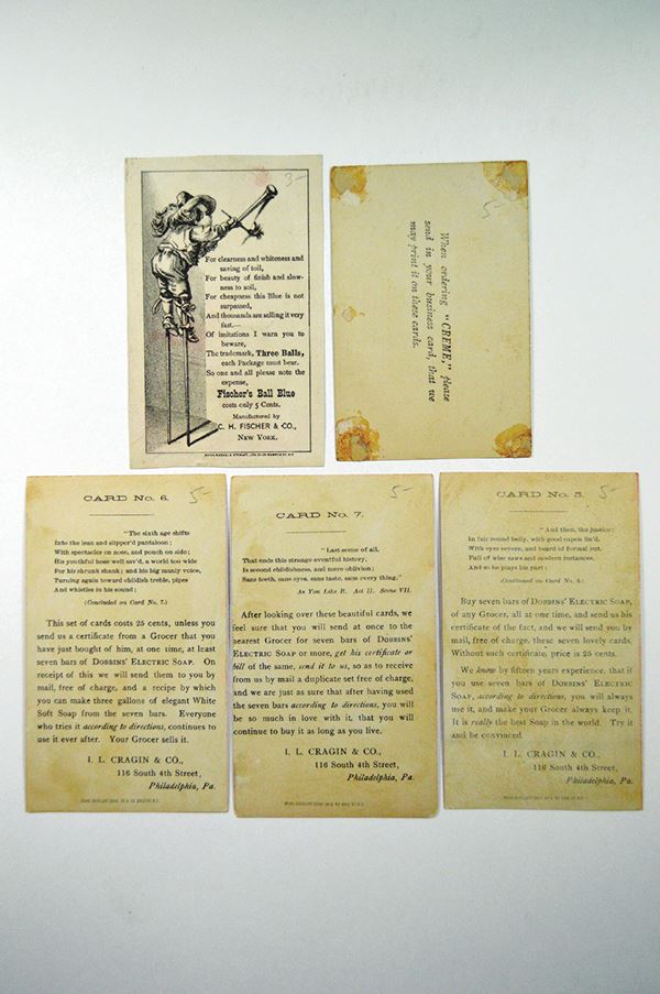 Three Dobbins cards, one Larkin and one Three Ball. Only the Larken was mounted on back. 5 pieces.