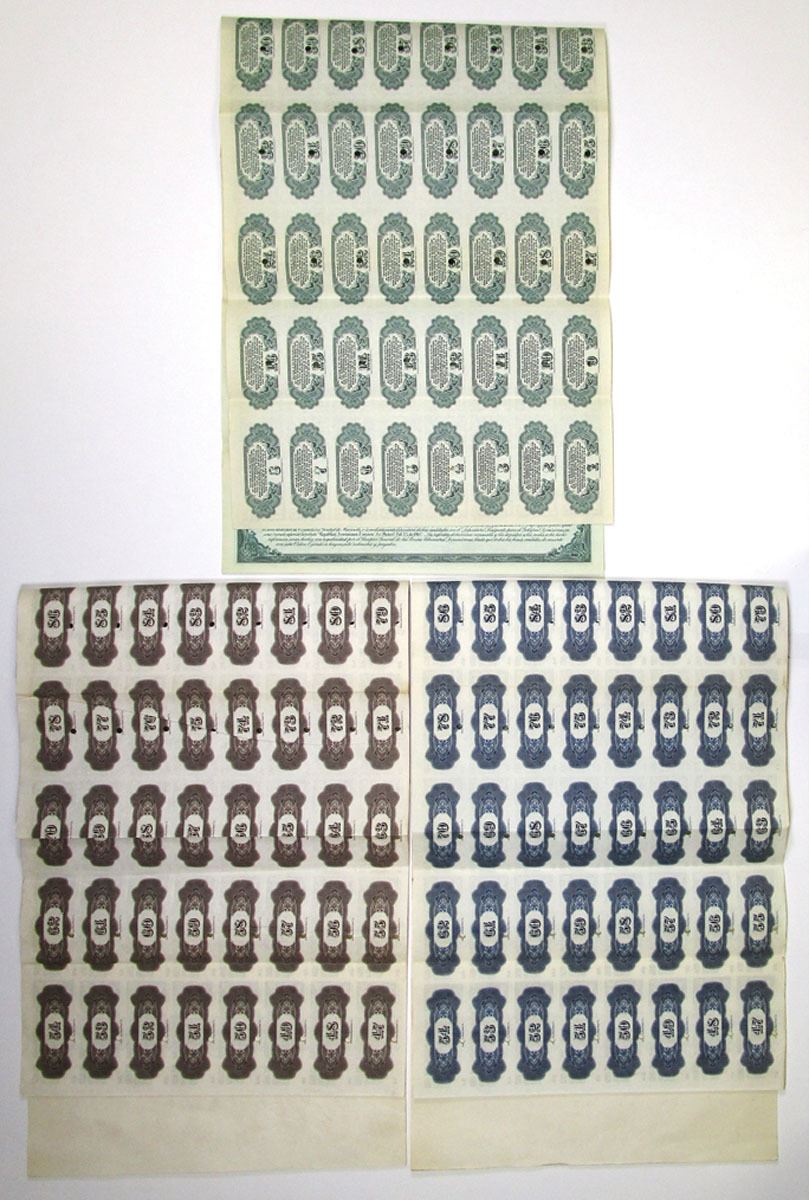 Dominican Republic, 1918 to 1914 Lot of 3 Specimen Bonds, Includes: 1918, $1000 5% Coupon Bond, Black with green border, Two figures at top flanking seal of DR; 1937 $1000 5 1/2% Customs Administration Sinking Fund Gold Coupon Bond, Black with blue border and no vignette; 1941, $500, 5 1/2% Customs Administration Sinking Fund Gold Coupon Bond, Black with brown border and no vignette. Bonds all have Specimen overprints, POCs, are in VF to XF condition with repairs made at splits, printed by ABNC. (3). Sold "AS IS" no returns accepted.
