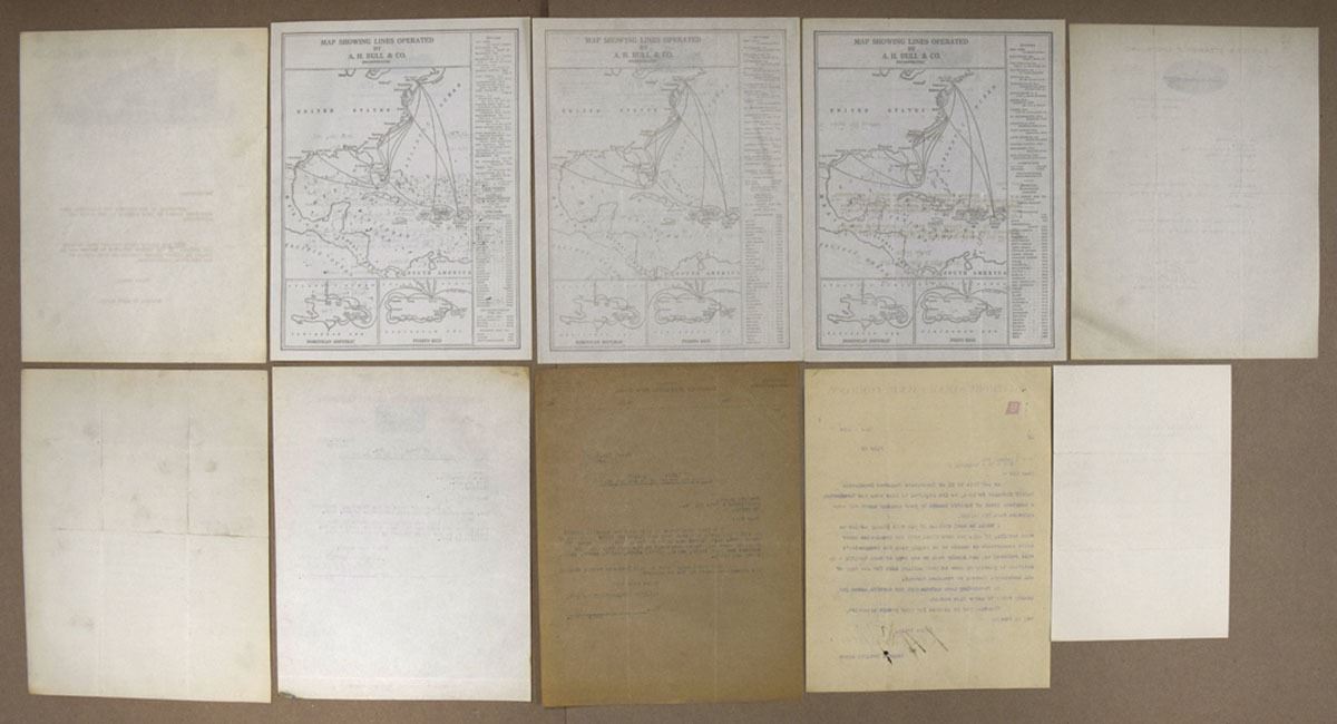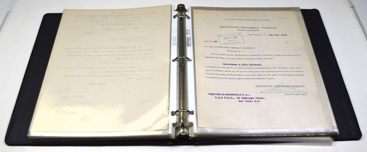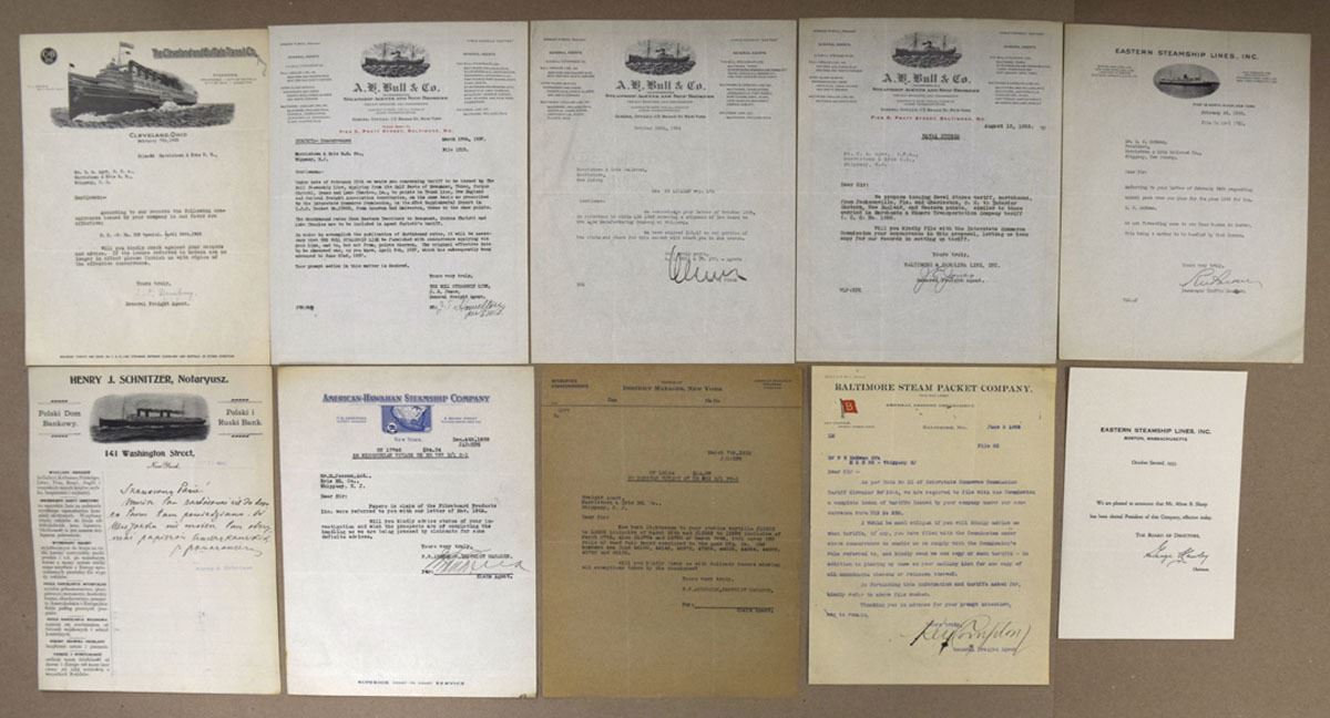 Various States and Countries..... Binder of correspondence from various steamship companies, includes: Adirondack Steamboat Co., American Hawaiian Steamship Co., A. H. Bull & Co. Inc., Morristown & Erie Railroad Co., American Liberty Steamship Corp., Baltimore Steam Packet Co., Champlain Transportation Co., Chautauqua Steamboat Co., Eastern Steamship Lines, Inc., Great Lake Transit Corp., International Mercantile Marine Co., Brunswick Steamship Co., Trunk Line Assoc., Hudson Navigation Co., Clyde-Mallory Lines, Old Dominion Steamship Co., Cleveland & Buffalo Transit Co., Cleveland and Buffalo Transit Co., Quaker Line, Southern Steamship Co. and More. Also Includes letter from Henry J. Schnitzer, Notaryusz (Notary). Condition ranges from Fine to Extremely Fine, with well-preserved examples retaining strong paper quality and clear, legible content. Sold "AS IS" no returns accepted. (Garden State Railroad Collection).