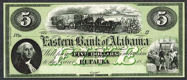 AL. 6-mule drawn cotton wagon passing field workers. Unsigned remainder. Bold green underprint. BWH&E. ABNC. Extremely Fine.