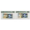 East Caribbean States/St. Vincent, ND (2000-15). Lot of 2 banknotes, Includes: Eastern Caribbean Central Bank $10, P-38v & P-52b, Issued Banknotes. Both are blue and black on m/c underprint with Queen Elizabeth II at center right. S/Ns H221152V & GK247520 Printer: TDLR. Both notes are PMG graded Gem Uncirculated 66 EPQ. (2).