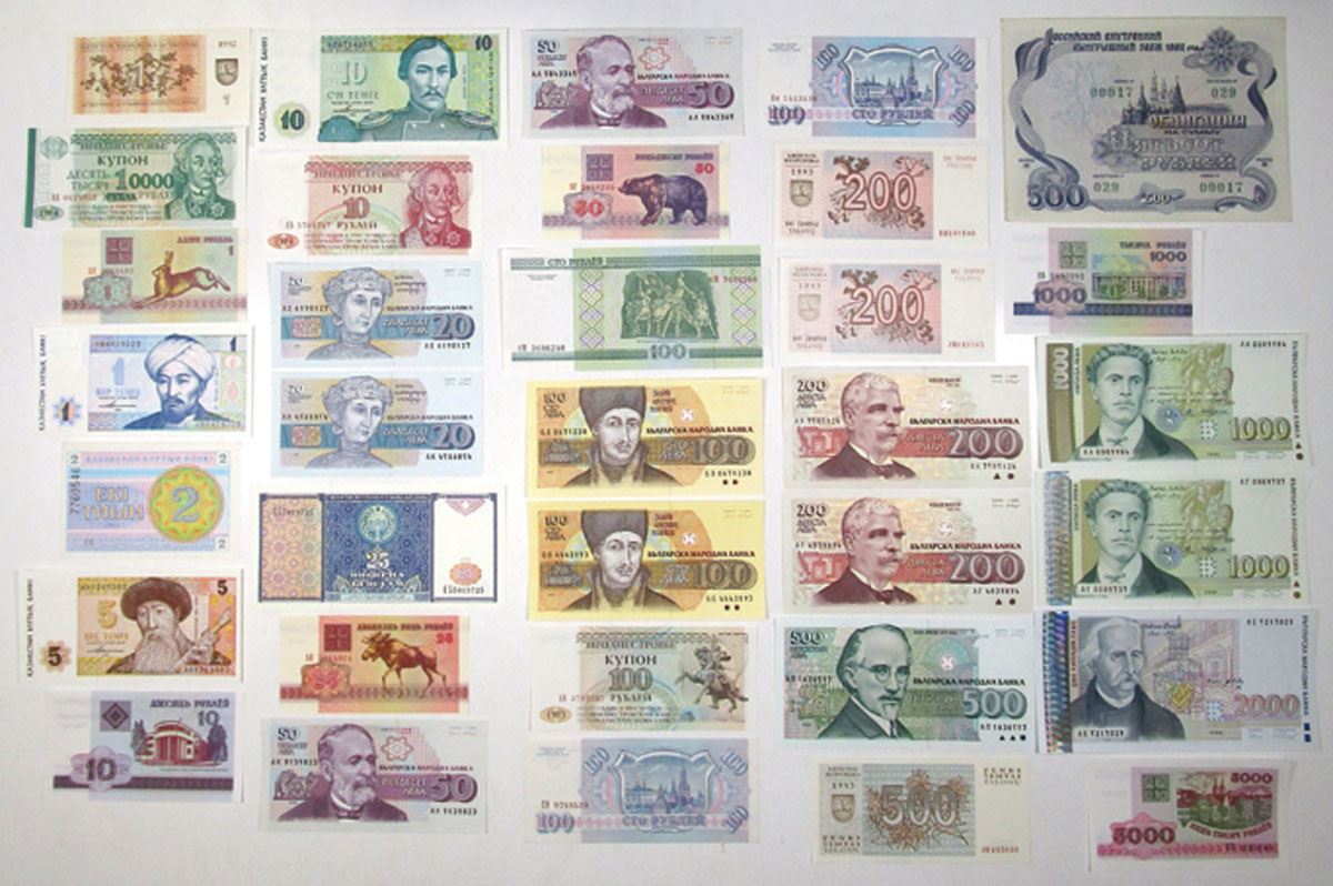Lot of 34 Issued Banknotes, Includes: Belarus National Bank, 1992, 1 Ruble, P-2; 1992, 25 Rublei, P-6; 1992, 50 Rublei, P-7; 1998, 1000 Rublei, P-16; 1998, 5000 Rublei, P-17; 2000, 10 Rublei, P-23; 2000, 100 Rublei, P-26a; Central Bank of Uzbekistan Republic, 1994, 25 Sum, P-77a; Kazakhstan National Bank, 1993, 2 Tyin, P-2d; 1993, 1 Tenge, P-7a; 1993, 5 Tenge, P-9a; 1993, 10 Tenge, P-10a; Bulgarian National Bank, 1991, 20 Leva, P-100a (2); 1992, 50 Leva, P-101a (2); 1993, 100 Leva, P-102b; 1992, 200 Leva, P-103a (2); 1993, 500 Leva, P-104a; 1994, 1000 Leva, P-105a, G& D; 1996, 1000 Leva, P-106a; 1996, 2000 Leva, P-107b; Bank of Lithuania, 1992, 1 Talonas, P-39; 1992, 200 Talonas, P-43a (2); 1992, 500 Talonas, P-44 (2); Bank Nistriana, 1994, 10 Rublei, P-18; 1993 (1994), 100 Rublei, P-20; ND (1996- Old Date 1994), 10,000 Rublei on 1 Ruble, P-29; Bank of Russia, 1993, 100 Rubles, P-254 (2). Lot also includes Russian Government 500 Rubles Bond from 1992. Notes range from XF to Gem Uncirculated condition. (34). Sold "AS IS" no returns accepted.
