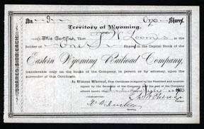 Wyoming Territory. 1907. 1 Share,Cert. #9, Black border, no vignette, XF, Issued and uncancelled. Rare and unlisted railroad in Cox.