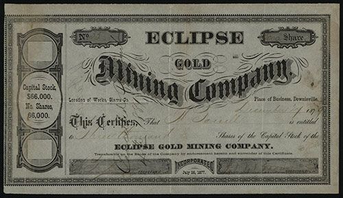 1879, 3000 Shares, Issued Stock, black on black border and underprint, VF-XF condition.