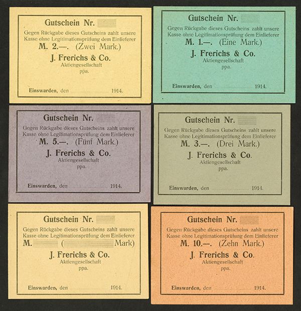 Germany, Notgeld. 1, 2, 3, 5, 10 and (---) Mark. All Choice Uncirculated. 6 pieces.