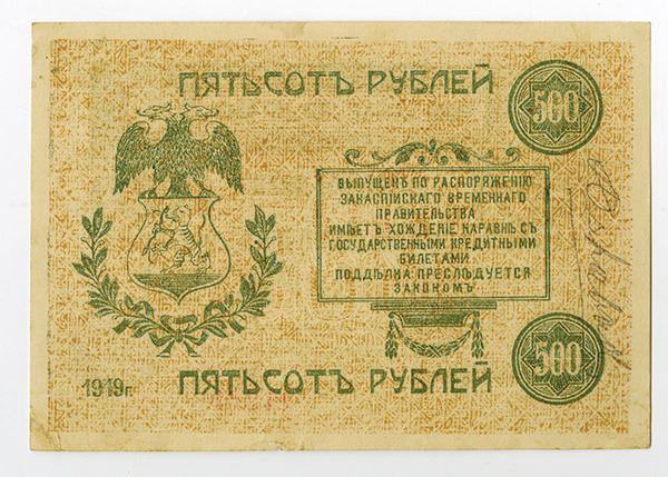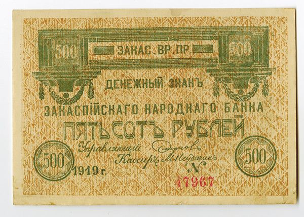 Ekaterinburg, Ural (Sverdlovsk), Russia. Unissued, unnumbered "merchandise order" for "1000 Rubles". Handshake in center of underprint, denomination on "counterfoil"-like left portion. Back contains text with regulations and rules for use of instrument. Very Fine and unusual.