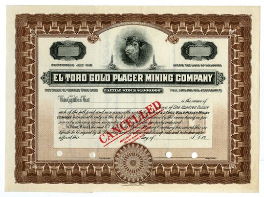 Delaware, ND (1900s). Specimen Stock Certificate, Black on brown border and underprint, Cow head at top, Cancelled overprints and POCs, XF-AU condition, SBNC.