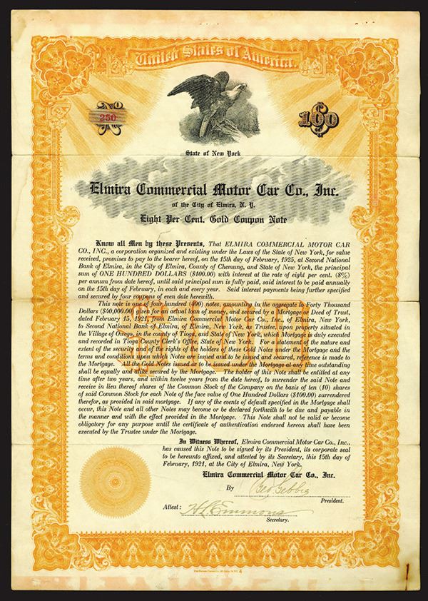 NY. $100 Coupon Bond. Paper tone, rust. Issued, coupons remain. Uncancelled. Fine.