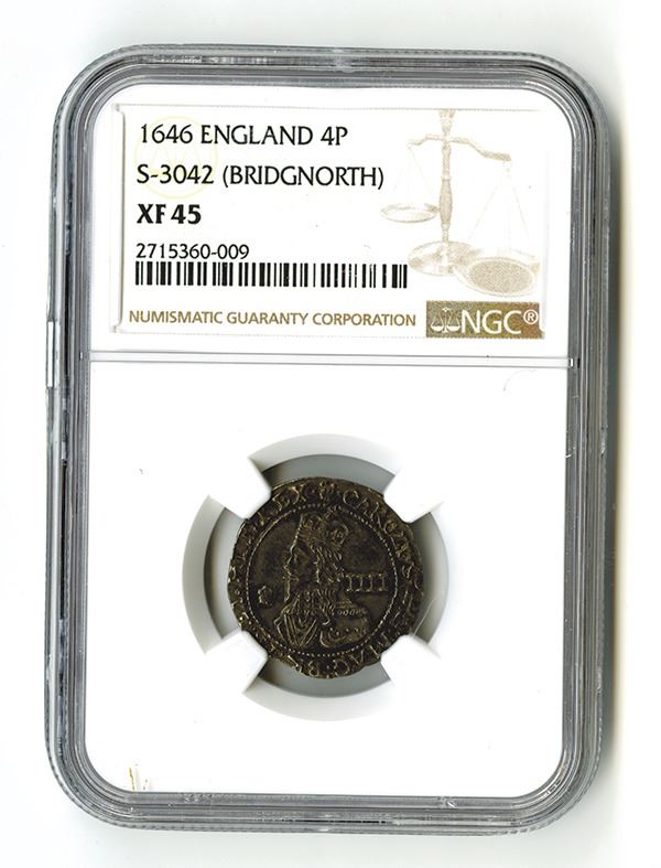 4 Pence, 1646, KM-286.3, S-3042 (Bridgnorth), NGC graded XF 35 (2715360-009).