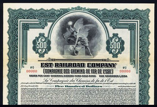 France, 1924, $500. 7% External Sinking Fund Gold Bond. ABNCo. Specimen w/coupons, XF, Rare French Railroad, U.S. Dollar denominated Gold Bond.