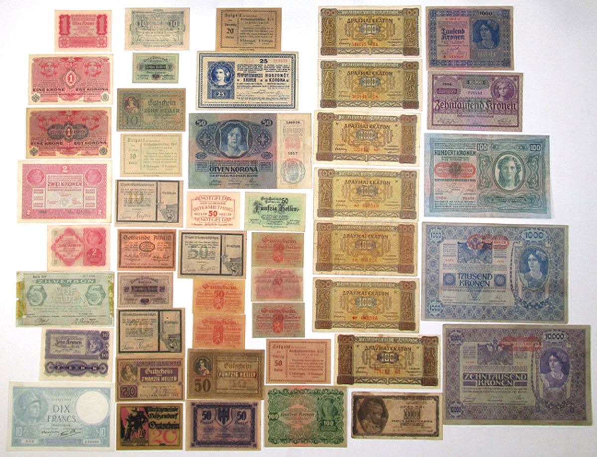 Europe, 1910s to 1940s. Lot of 35+ Issued Banknotes from Austria, Hungary, Greece, and more, Includes many early regular issues as well as an assortment of Notgeld (22) and inflation notes. Generally Fine or better. (35+). Sold "AS IS" no returns accepted.