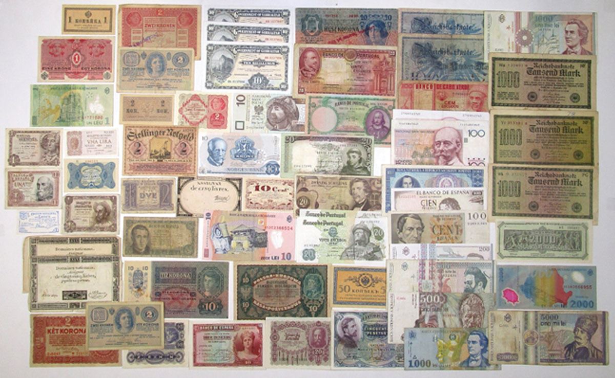 Europe, 1900s to 2018. Lot of 60+ Issued Banknotes, Highlights Include: Reichsbanknote, 1908. 100 Mark, P-34 (2); Banco National a Republican Socialiste Romania 100 Lei, P-97a, 1966; Banca National a Romaniei 500 Lei, P-98b, 1991; 200 Lei, P-100a, 1992; 500 Lei, P-101b, 1992; 1000 Lei, P-101Aa, 1991; 5000 Lei, P-103a, 1992; 1000 Lei, P-106, 1998; 2000 Lei, P-111a, 1999; 1 Leu, P-117a, 2005; 10 Lei, P-119a, 2005; Austrian National Bank 20 Schilling, P-142a, 1967 (1968); Nationale Bank van Belgie 100 Francs, P-140a (2), ND (1978-81); Norges Bank 10 Kroner, P-36c, 1984; Treasury Small Change Notes, ND (1915), 1 Kopek, P-24a; 2 Kopeks, P-25ar; 50 Kopeks, P-31a; Government of Gibraltar, 2018, 10 Shillings = 50 Pence, P-41a and more from Portugal, Germany, and France. Notes range from Fine to AU condition. (60+). Sold "AS IS" no returns accepted.