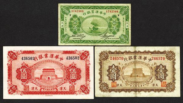 China. 10 Cents, 1, 5 Dollars. Tientsin. P-S304b, S305a, S309c. S/M C256-1, -2, -10. First two Very Fine, the third Choice XF to Almost Uncirculated. 3 pieces. (The Silicon Valley Collection)