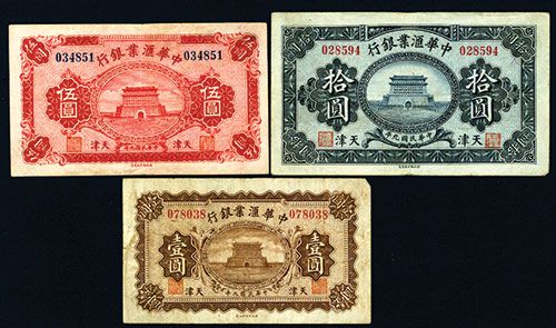 Lot of 3 notes, all issued and 1920 dated, Includes 1 Yuan, P-S304b (S/M#C256-1b), “P” overprint VF to Choice VF; 5 Yuan, P-S305a (S/M#C256-2b), “No Overprints”, XF to Choice XF; and, 10 Yuan, P-S306 (S/M#C256-3b), “P” overprint, XF to Choice XF, all are attractive, have bright colors, great paper body and sharp corners. BEPP.