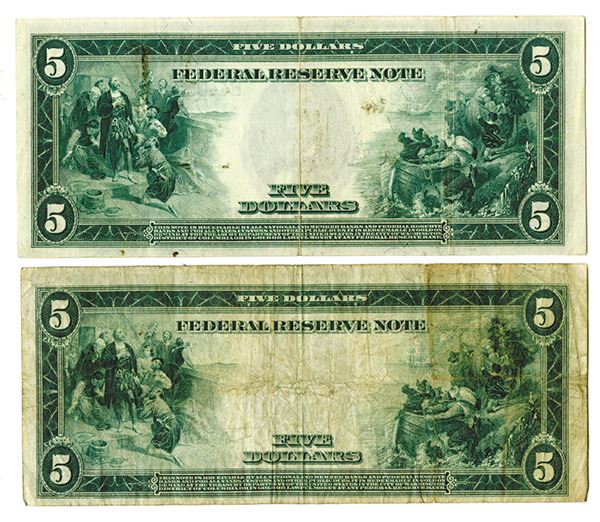 New York, NY. $5 F.R.N., Choice Fine to VF and Choice VF/XF.